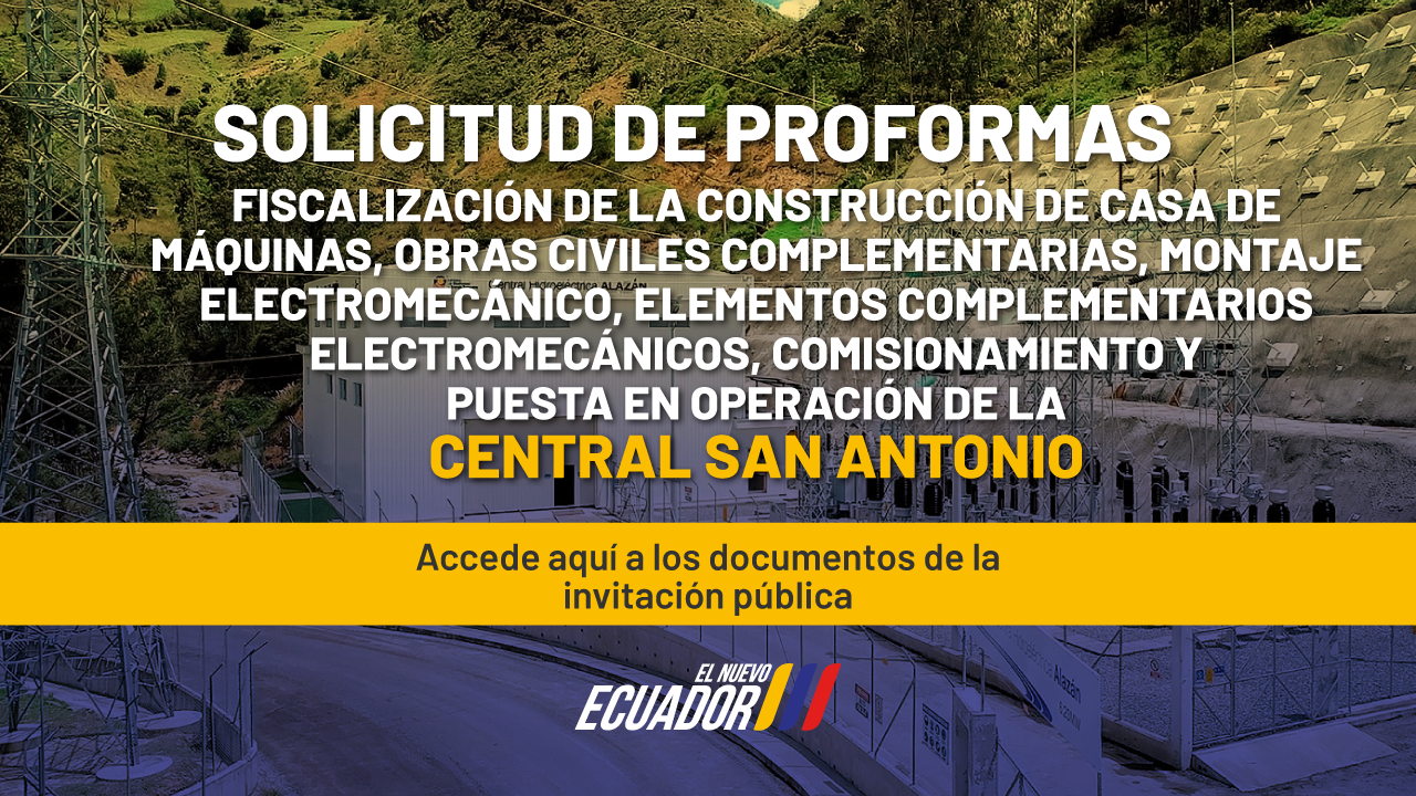 SOLICITUD DE PROFORMAS FISCALIZACIÓN DE LA CONSTRUCCIÓN DE CASA DE MÁQUINAS, OBRAS CIVILES COMPLEMENTARIAS, MONTAJE ELECTROMECÁNICO, ELEMENTOS COMPLEMENTARIOS ELECTROMECÁNICOS, COMISIONAMIENTO Y PUESTA EN OPERACIÓN DE LA CENTRAL SAN ANTONIO
