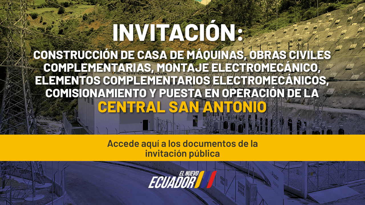 INVITACIÓN – SOLICITUD DE MANIFESTACIONES DE INTERÉS “SUR CONSTRUCCIÓN DE CASA DE MÁQUINAS, OBRAS CIVILES COMPLEMENTARIAS, MONTAJE ELECTROMECÁNICO, ELEMENTOS COMPLEMENTARIOS ELECTROMECÁNICOS, COMISIONAMIENTO Y PUESTA EN OPERACIÓN DE LA CENTRAL SAN ANTONIO”