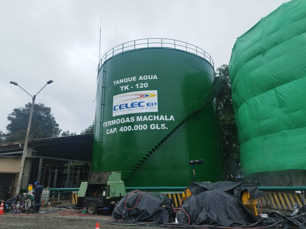 Miguel Herdoiza, gerente de Termogas Machala, señaló que “desde julio de 2023 iniciamos el mantenimiento integral de los tanques de almacenamiento tanto de diésel, así como de agua, lo que permitirá alargar su vida útil y su correcta operatividad”. Explicó que los tanques de diésel se utilizan para la operación de las unidades TM-2500, turbinas que usan normalmente gas natural pero también combustible líquido en situaciones eventuales por requerimiento del Operador Nacional de Electricidad. En cuanto a los tanques de agua, estos son partes del sistema de tratamiento de agua para inyección a dichas turbinas. Agregó que es indispensable tener en óptimas condiciones estos tanques tanto por seguridad como por cumplimiento de las normas ambientales.