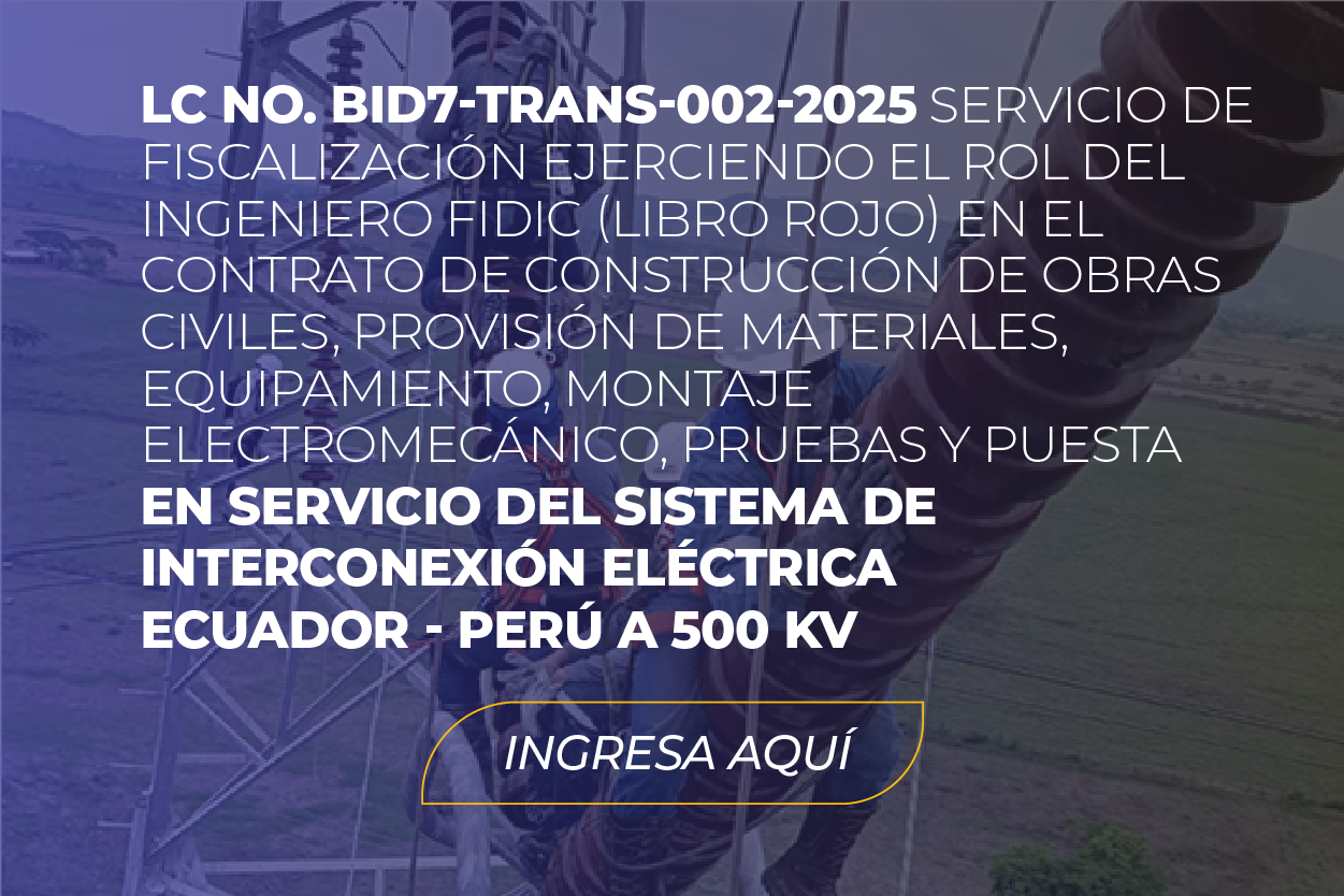 En este espacio encontrará información sobre la licitación internacional Interconexión Ecuador – Perú a 500 mil voltios.